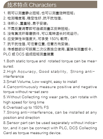 檢測電動機、內(nèi)燃機等旋轉動力設備,輸出扭矩及功率;檢測各種機械加工中心、自動機床的工作過程中的扭矩;檢測各種旋轉動力設備系統(tǒng)所傳遞的扭矩及效率;可用于制造粘度計、電動、氣動、液力扭力扳手。